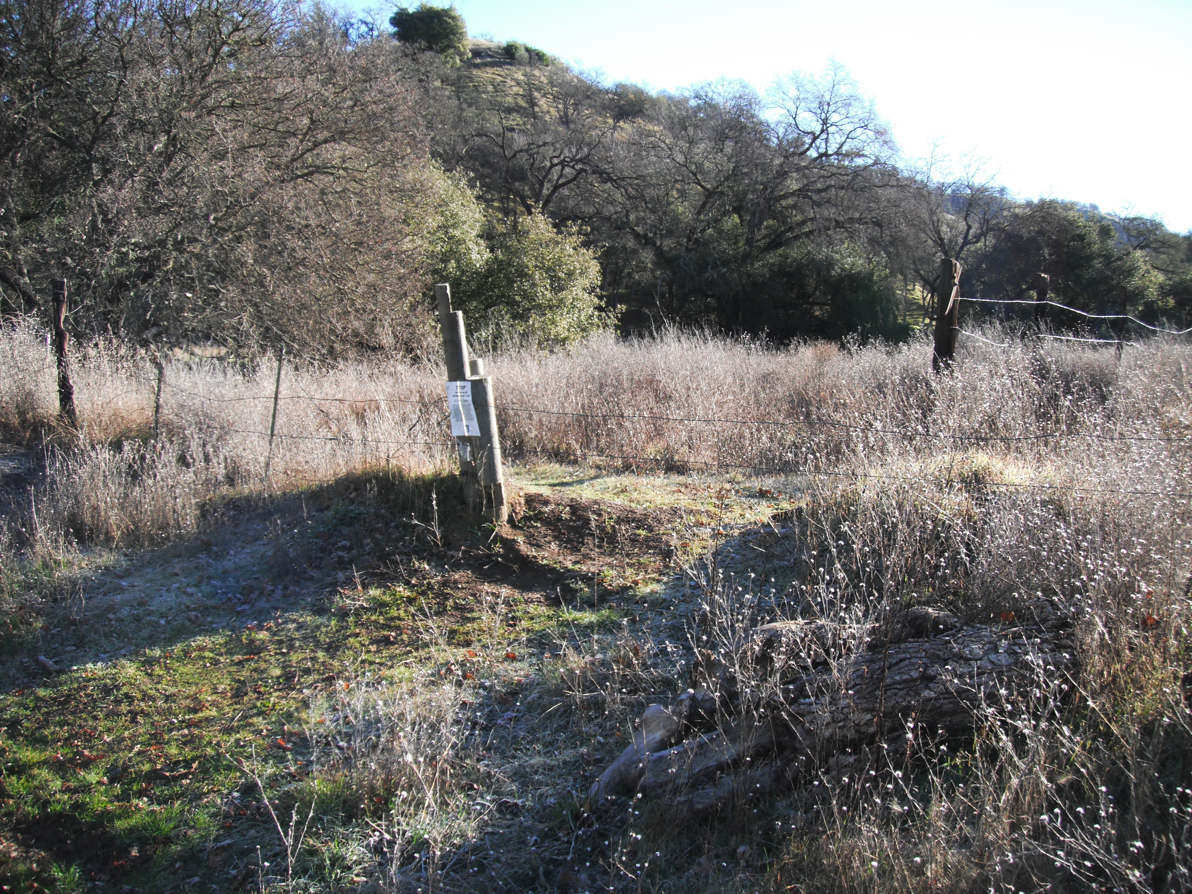(4-4-14 NOTE: As of the date of this note, we have installed the new fence crossing (a nice stile-step) in coordination with DFW. There are also trail markers (4x4 posts) to guide you up the hill. The trail infrastructure is completed!)