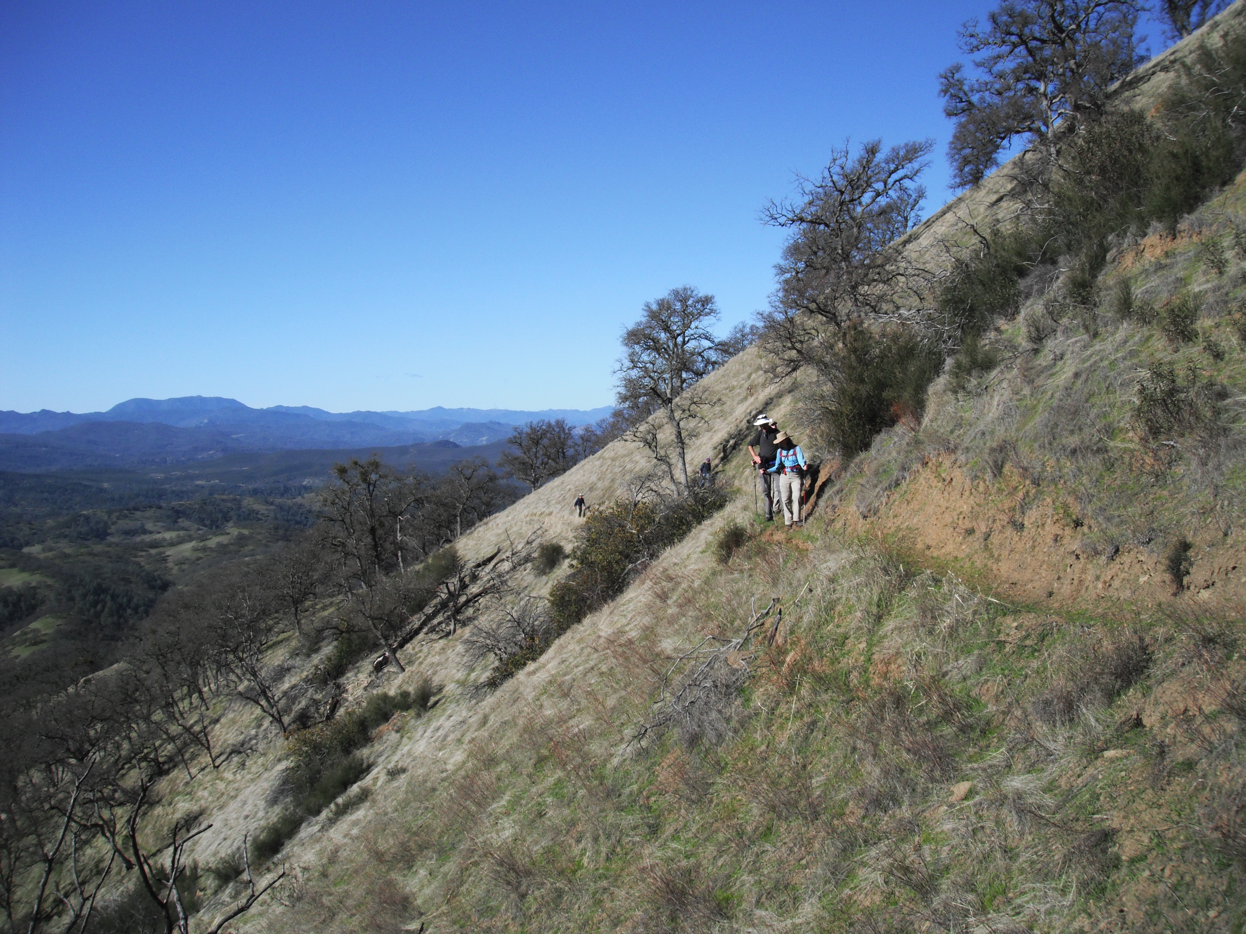 This is a hard one! To reach the summit of Berryessa Peak, you will hike approximately 7.25 miles, one way, with 3500-feet of elevation gain. There is only one way in and one way out of the public lands this trail provides access to, so bring enough water, food, and emergency medical supplies. If you pass off the public land, you will be trespassing, so use your map and GPS and stay on the trail! The downloadable map shows property boundaries and the trail location, as well as images from along the trail to use as reference. Only those in excellent physical shape should attempt to reach the summit of Berryessa Peak! THIS IS NOT A SUMMER HIKE!