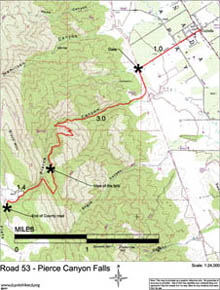 the Casey Flat Ranch. Road 53 goes straight. You'll wind up through Pierce Canyon,